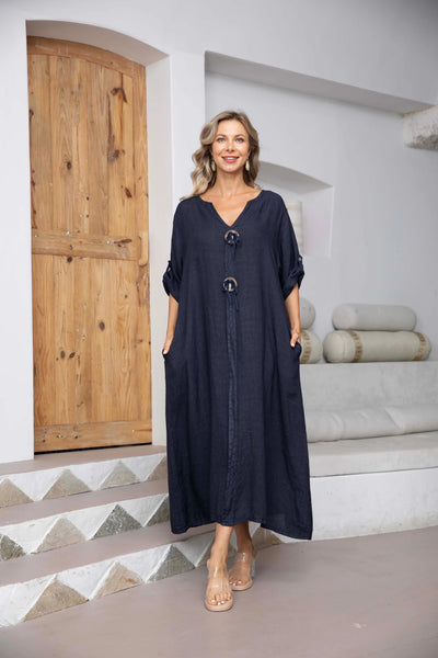 Step out in style with Emilia's Coconut Button Dress. Made with stunning coconut buttons, this summer dress effortlessly combines elegance and warmth. Perfect for any occasion, it will make you feel like the most exclusive and sophisticated person in the room. Embrace the luxury and beauty of this dress.