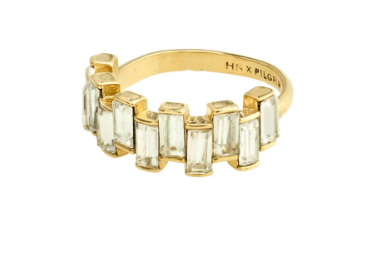 The joy of creating! Create beautiful curated hands with this ring from Pilgrim's CREATE collection. Rectangular offset crystal stones create an eye-catching effect and a nice contrast to the ring's surface, which has a rough finish. Combine with your favourite rings for a personalized and stacked glam look, and you're ready to rock! A recycled item that is made from a minimum of 75% recycled materials.