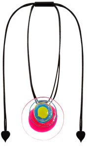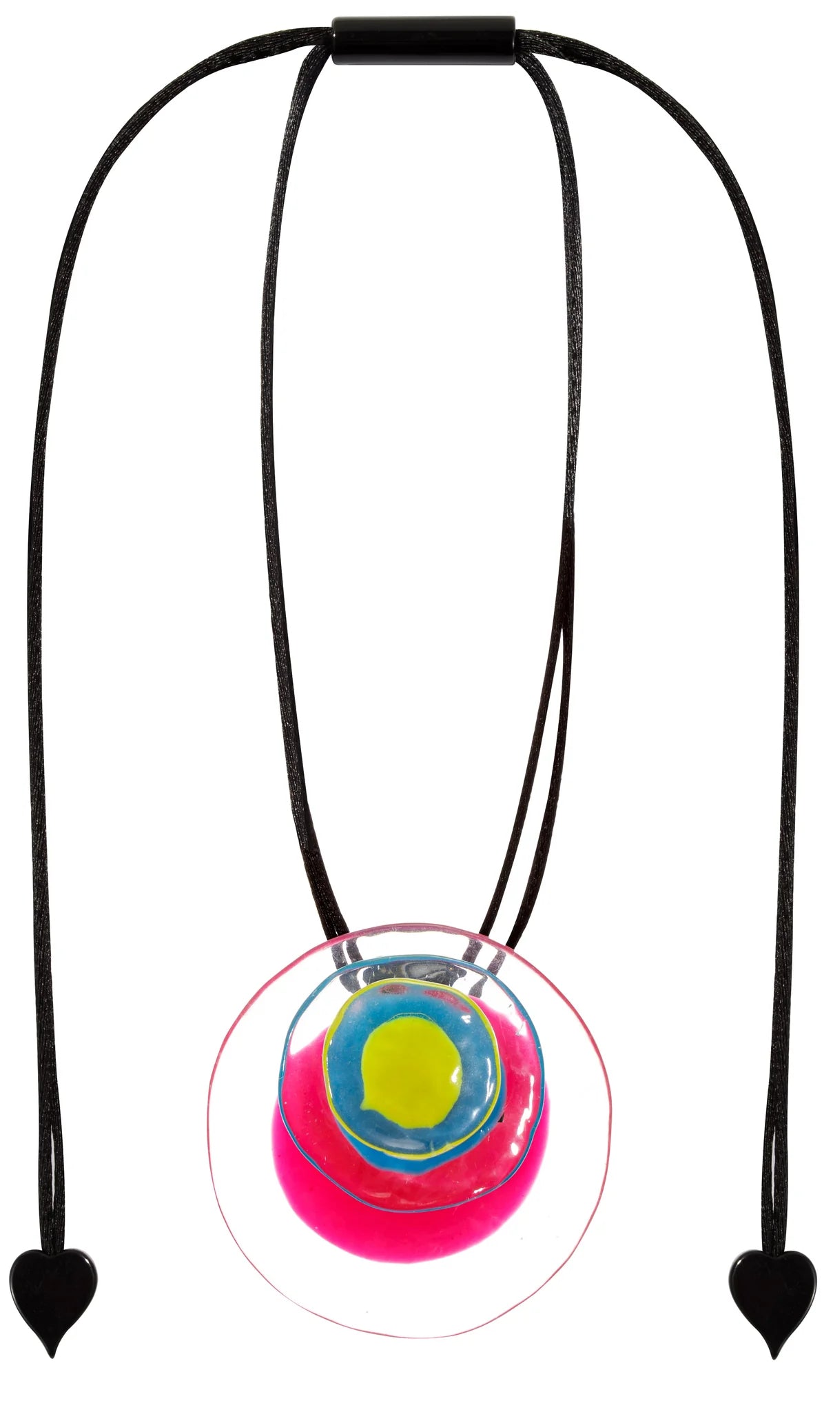 Introducing the PRUE by ZSISKA pendant from our exclusive FLORA collection, a delightful nod to the vibrant world of Dame Prue Leith. This Spring-Summer 2025, let your style bloom with our handcrafted resin masterpiece, available in a kaleidoscope of colours: Pink Blue Yellow, Blue Green Orange, and Green Yellow Pink. Each pendant features layered, free-flowing resin discs, capturing the essence of blooming petals with a playful mix of translucent and opaque hues. The adjustable cord ensures a perfect fit, making it a versatile addition to any outfit. Whether you're drawn to the energetic neon combinations or the timeless elegance of classic tones, this pendant is designed for those who adore bold, statement pieces. Embrace the artistry of Dutch craftsmanship and turn heads wherever you go with the PRUE by ZSISKA pendant. Perfect for adding a touch of whimsy and sophistication to your jewellery collection!