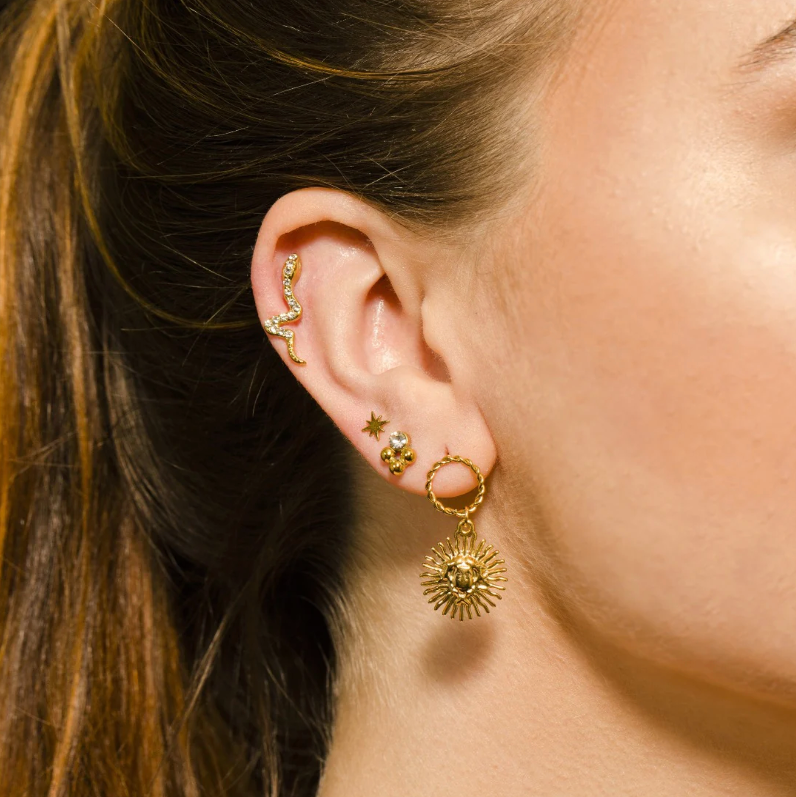 Crafted from Hand Forged Graded Metal Dipped in Pure 18 Karat Gold. Free of Nickel, Lead and Cadmium. Non-Allergic and will not turn Skin Green.