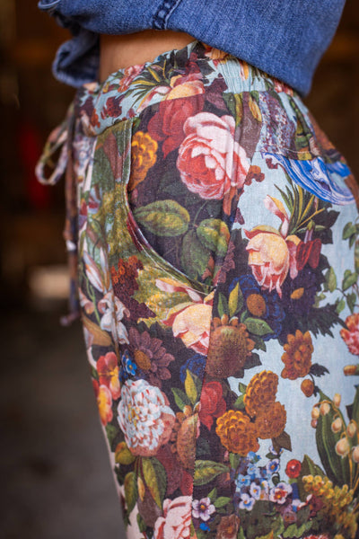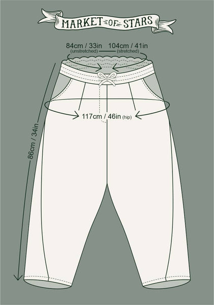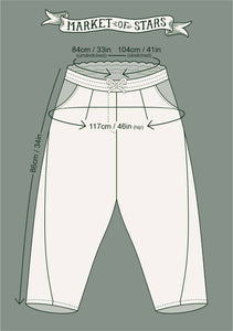 PREORDERS NOW OPEN! Our highly anticipated new Artist Pants are made from a natural blend of linen and bamboo/wood viscose, and feature a drawstring front, elastic waist back panel, pockets, cropped length, and a flattering lantern hem design. The custom-woven fabric is easy to care for and so comfy. They are one-size and will fit approximately size 4/6 (S) to 12/14 (L).