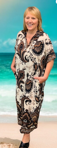VISCOSEPAISLEY PRINT KAFTAN DRESSGREAT FIT!